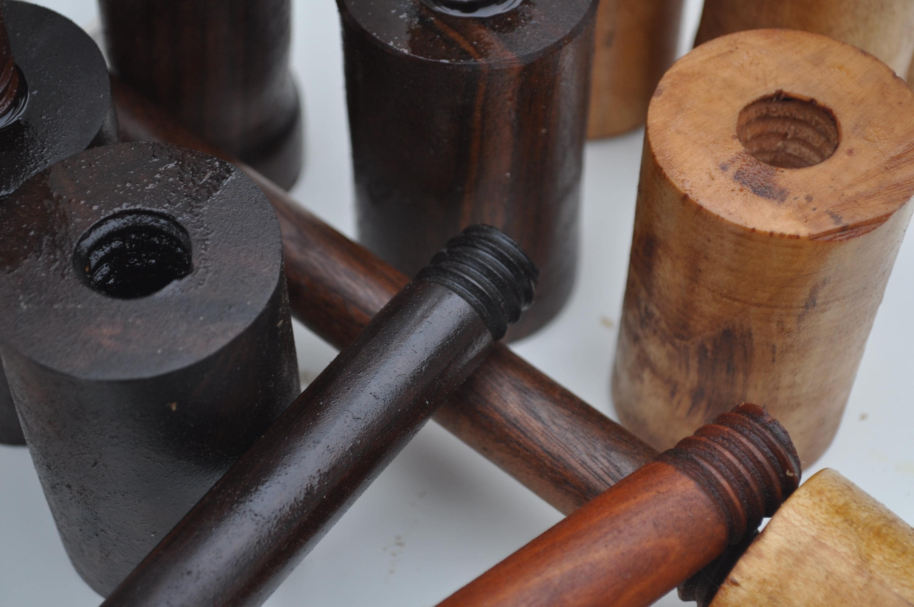 bases are Walnut ,Cherry, Maple handles are walnut and cherry